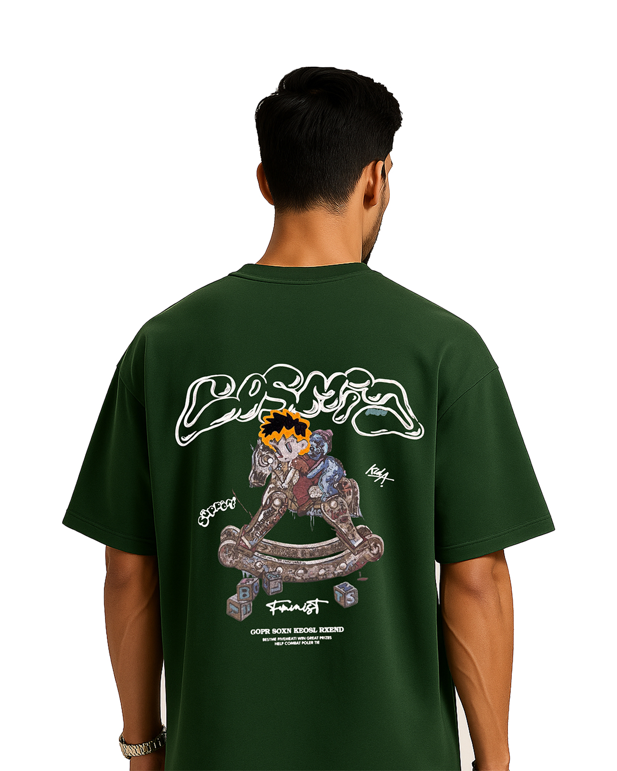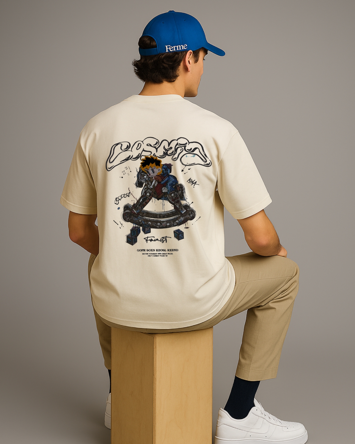 Step into a world where art meets attitude with the COSMIC RIDE Oversized Graphic Tee – Beyond Limits Edition.