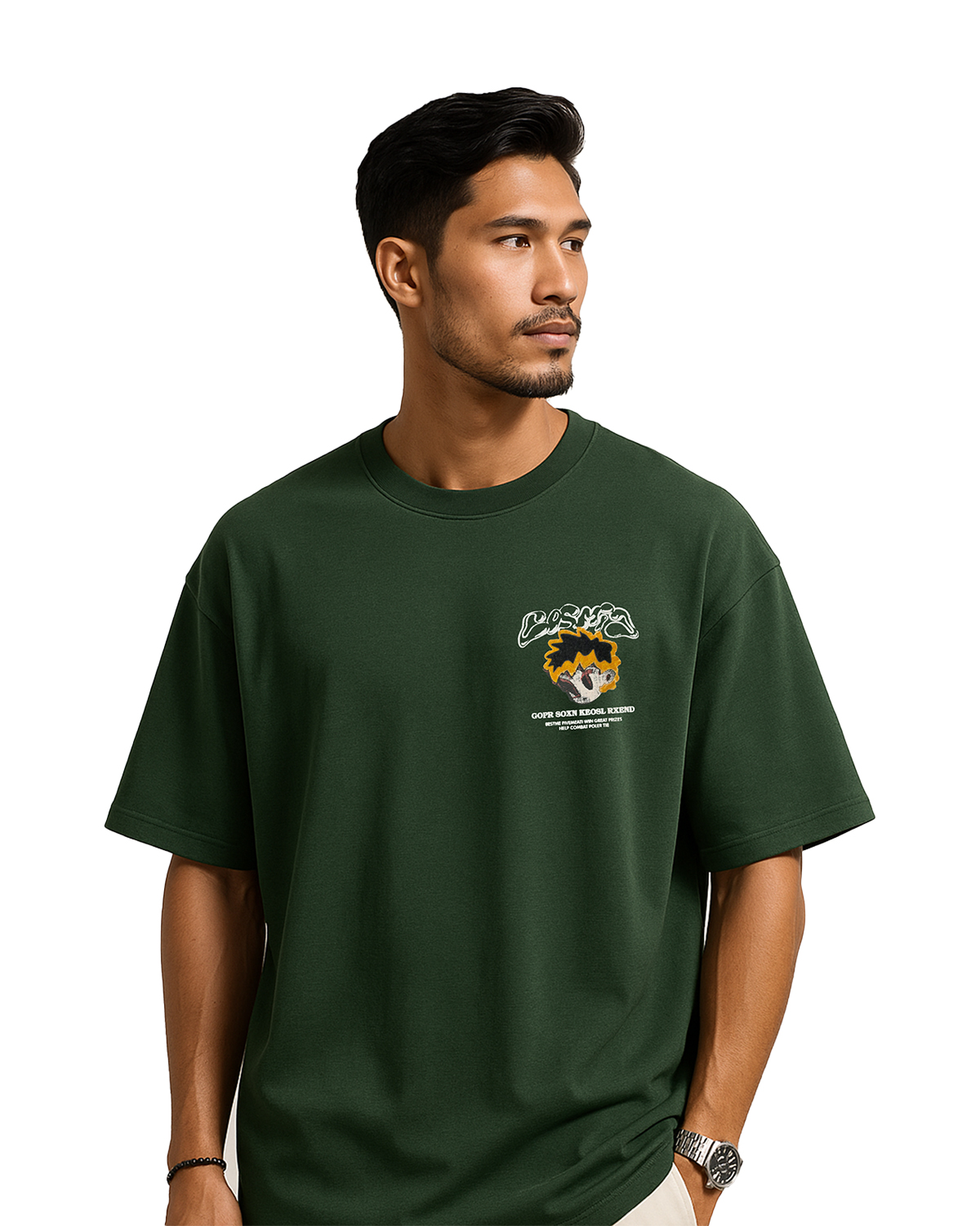 Pair the Forest Green tee with black cargos or denim for a bold street look,