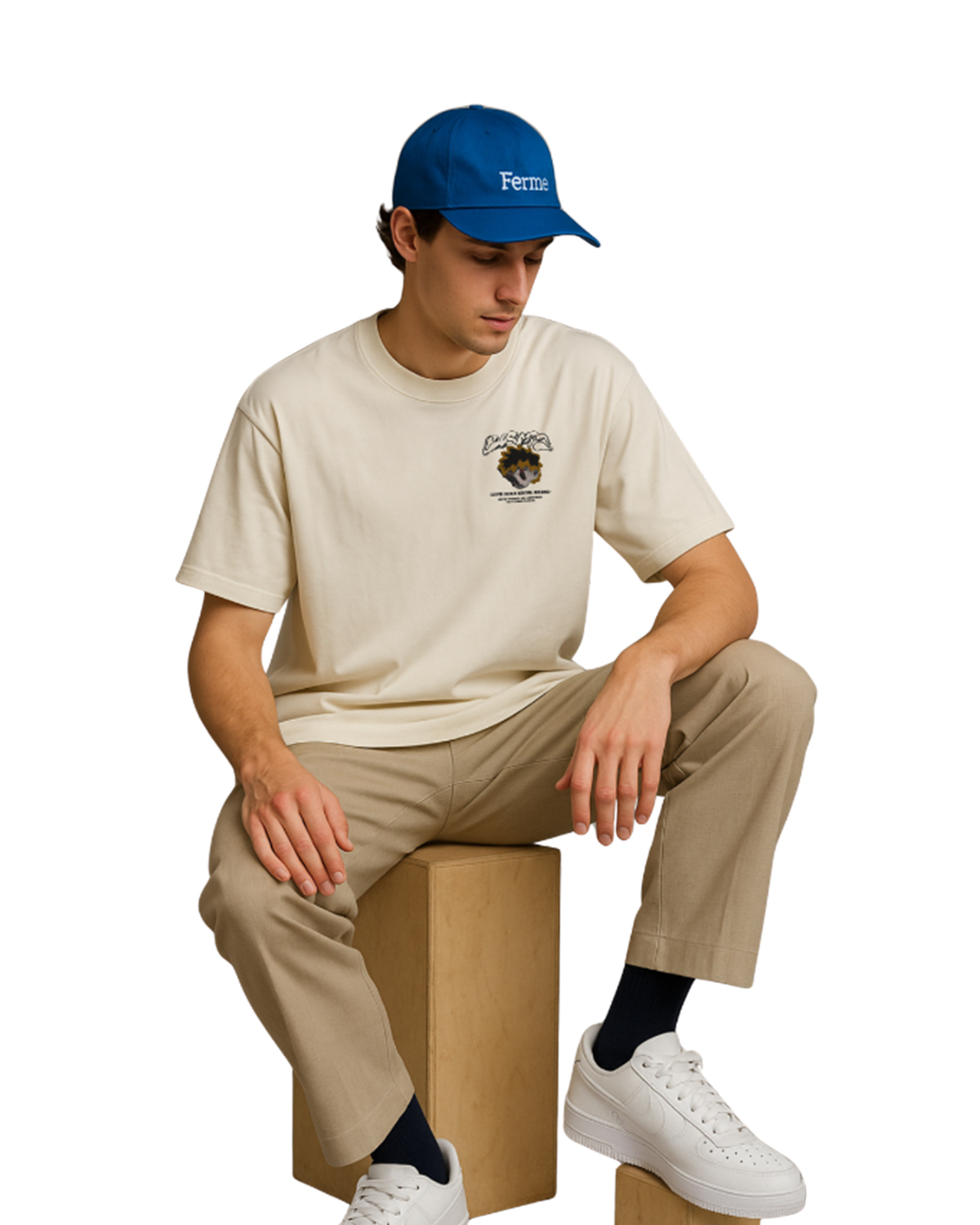 or go for the Cream White tee with beige pants and white sneakers for a clean, minimal aesthetic.