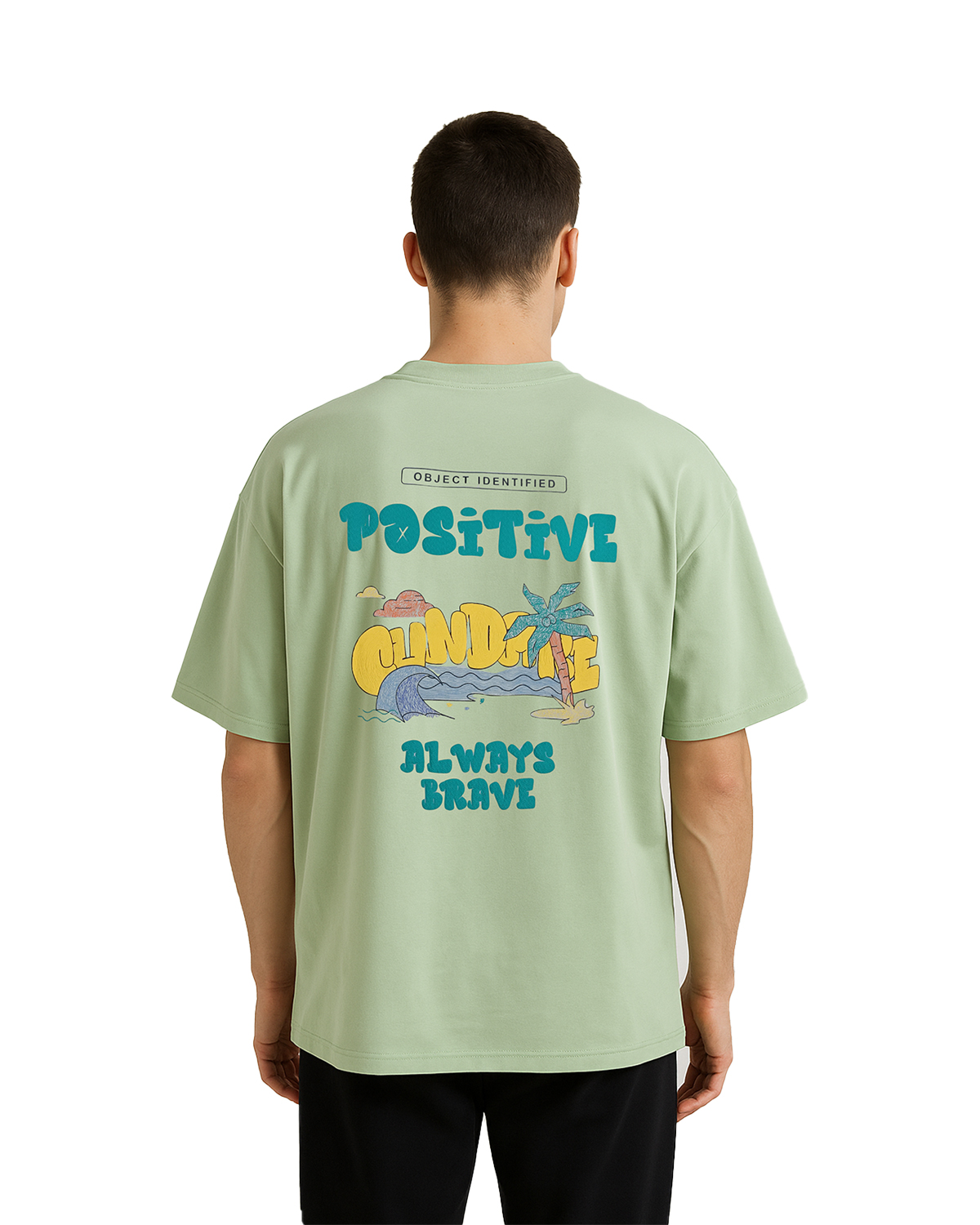 Back Graphic: “POSITIVE” script, and art-style labels