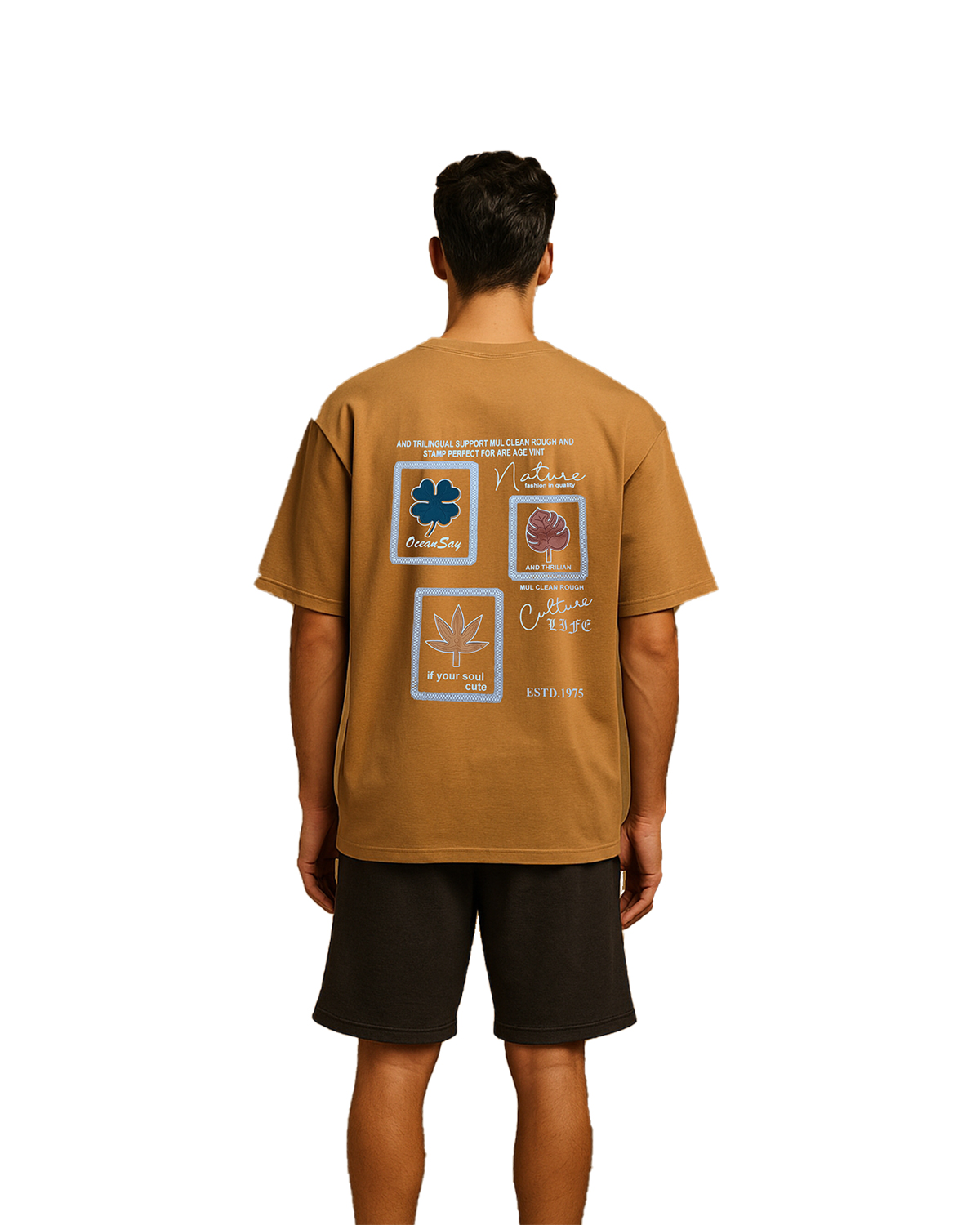 Reconnect with nature through your wardrobe. This oversized graphic T-shirt features a unique, eye-catching back print inspired by natural elements and global cultural motifs. Designed for those who embrace both style and meaning, this piece blends earthy tones with vibrant illustrations to make a subtle yet powerful statement.