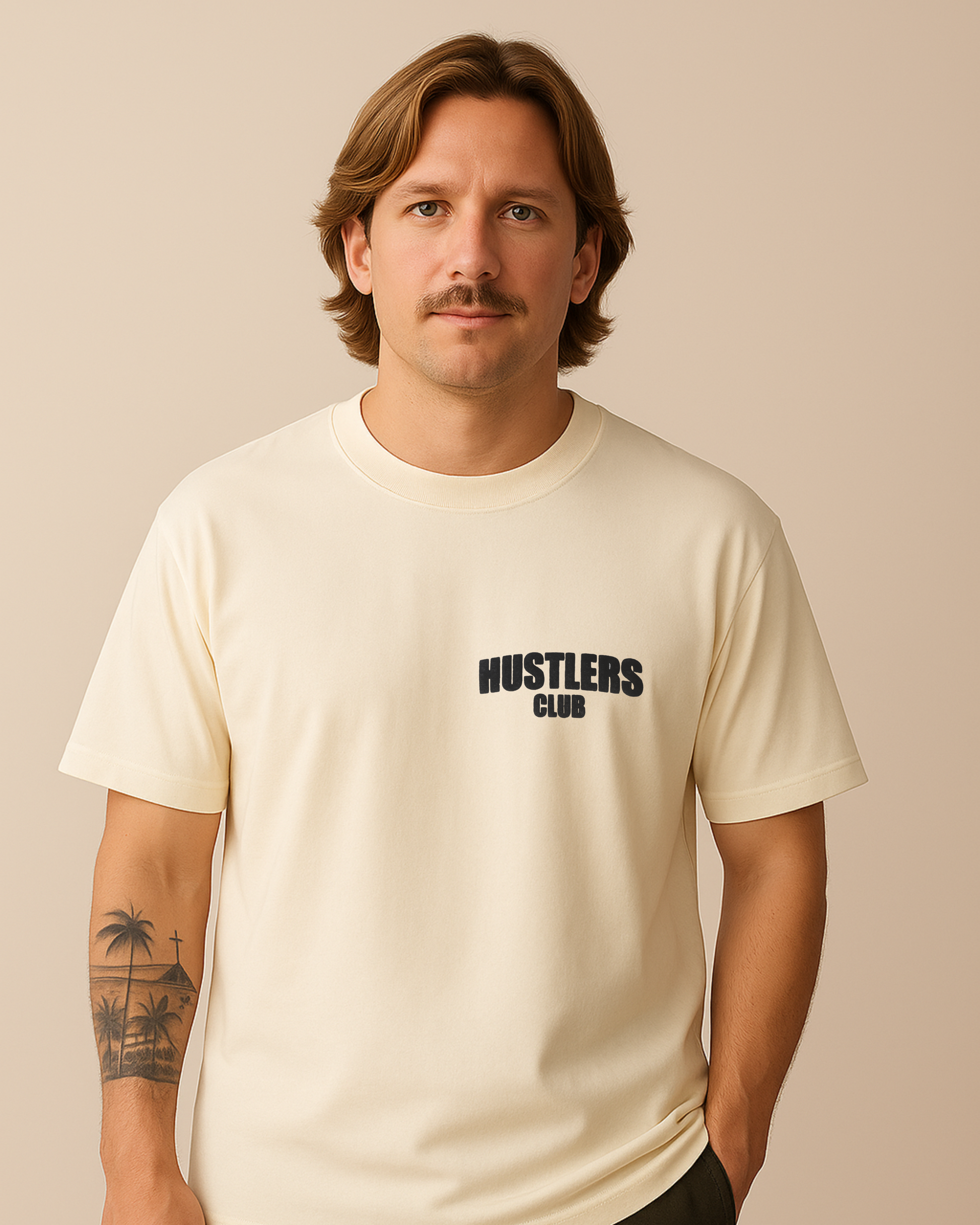 Crafted from premium breathable cotton, it offers all-day comfort and an edgy silhouette that drips confidence. The bold HUSTLERS CLUB print on the back commands attention, whether you're on the streets, at the gym, or building empires.