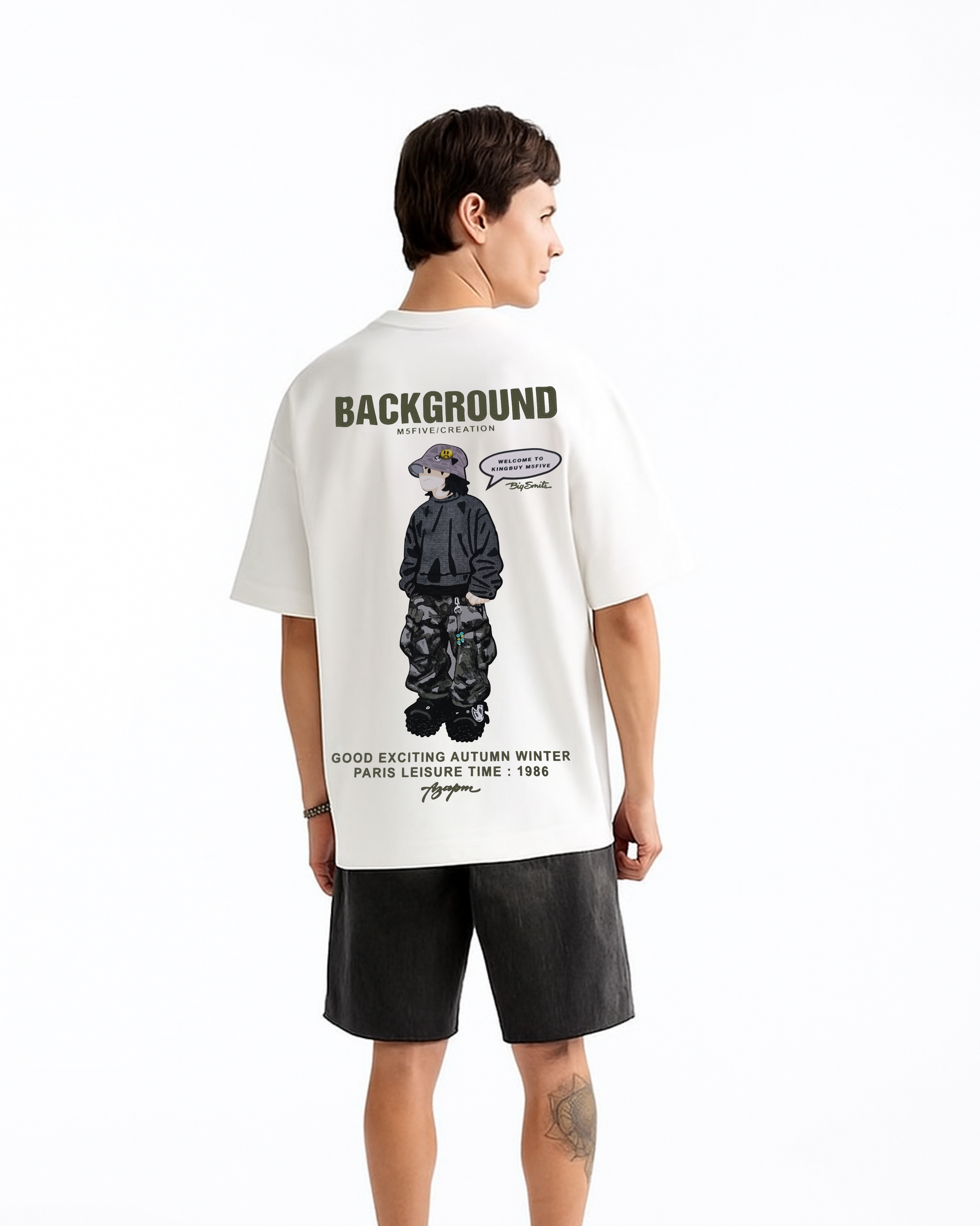 Step into the throwback streetwear vibe with our "Background Leisure '86" Oversized Graphic Tee. Featuring a bold back print of a cartoon-styled streetwear character, this tee pays tribute to vintage Parisian leisure with a modern flair. Designed for those who love to stand out while staying effortlessly comfortable.